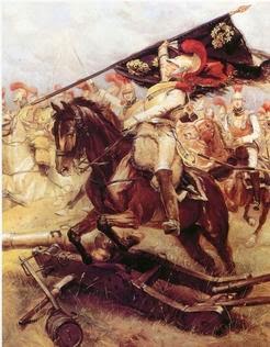 La bandera rusa del cuadro de Detaille no logré localizar a qué regimiento pertenecía, así que intuyo que no fuera un modelo genérico hecho por el pintor para no herir susceptibilidades. Si alguien es aficionado a la vexilología, le dejo como desafío que lo averigüe; en su lugar la reemplacé por la que llevaba en dicha época el Regimiento de Granaderos de Moscú.