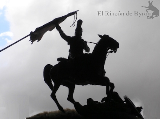 La figura se inspira en un cuadro de Jean-Baptiste Édouard Detaille, «Retour de carabiniers de la charge«, aunque el gran pintor francés realizó varios cuadros con el mismo motivo, un jinete volviendo hacia sus líneas con una bandera conquistada, al tiempo que salta los restos de un cañón.