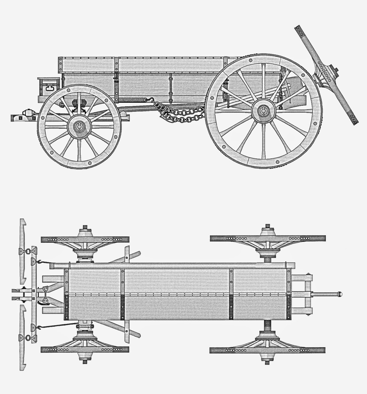 Los vagones de todos los calibres excepto el de 4 pulgadas disponían de un cofre de herramientas de una altura de 34 cm y una longitud de 36 cm, sobre el que se podía sentar un conductor.