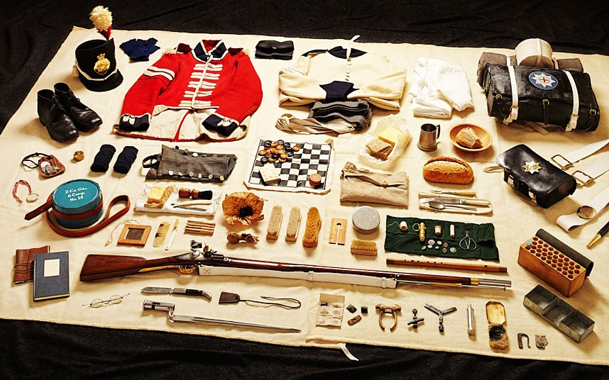 Con el título «Equipo militar por los años: de la Batalla de Hastings a Helmand» y el subtítulo: «Del armamento ordinario y la armadura de la Batalla de Hastings, al equipo de alta tecnología de un conflicto moderno, un nuevo estudio fotográfico explora el equipo personal llevado por el soldado común británico durante los pasados 1,000 años«, la página web del diario británico «The Telegraph» [1] nos mostraba un compendio de los utensilios comunes y no tan comunes que llevaban los soldados consigo durante las campañas. En nuestro caso solo comentamos el que se mostraba de la época napoleónica, como curiosa e instructiva muestra del equipamiento del soldado común.