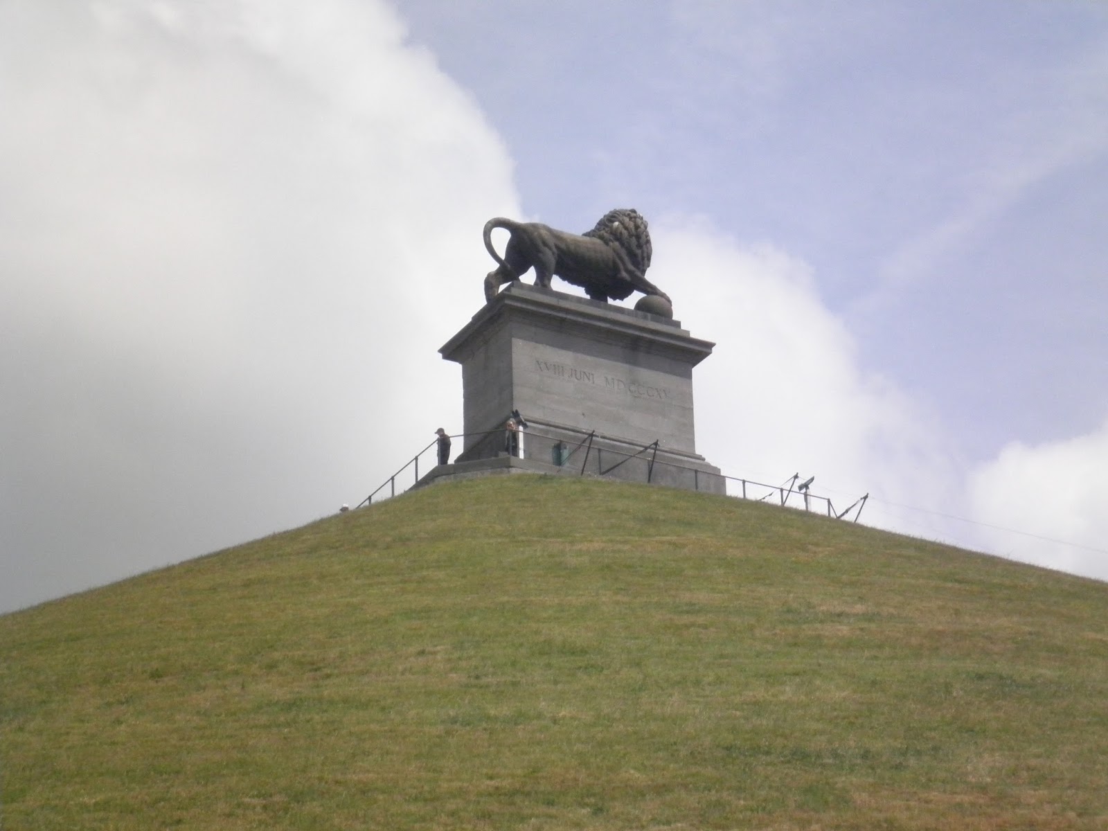 (***) Como rezaba el panel explicativo, el Butte du Lion fue construido entre 1824 y 1826. Está dedicado a los soldados muertos el 18 de junio de 1815 y marca el lugar donde fue herido el Príncipe Guillermo de Orange, heredero al trono y comandante del I Cuerpo del ejército de Wellington. Una escalera de 226 peldaños lleva hasta la cima del montículo (41 m. de altura) desde donde se puede admirar el lugar de la batalla. El león protege el globo terrestre y simboliza la paz reencontrada en Europa.