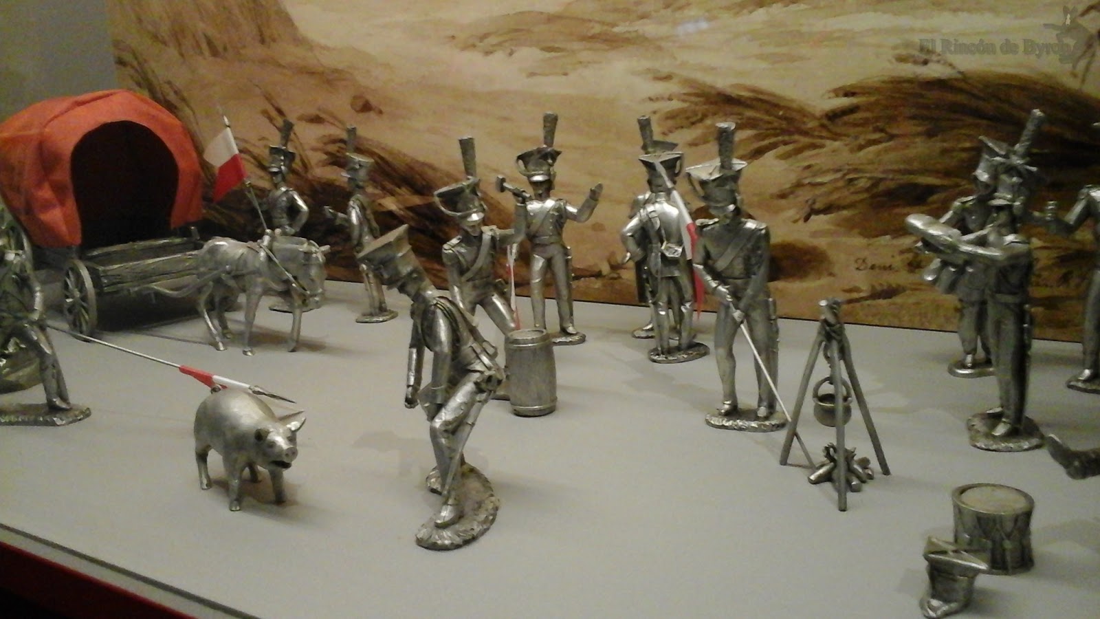 Más pequeño, que el museo de Wellington, la granja de Caillou tiene unas pocas habitaciones y paneles explicativos. Supongo que tras ver el de Wellington supo a poco, lo cual me lleva a pensar si el resultado de la batalla hubiera sido distinto también se vería reflejado en los respectivos museos pero no deja de ser una mera conjetura. Trajes de época y el Emperador en persona con su estado mayor en el jardín no eran objetivos desdeñables así que unas instantáneas para inmortalizar el momento.