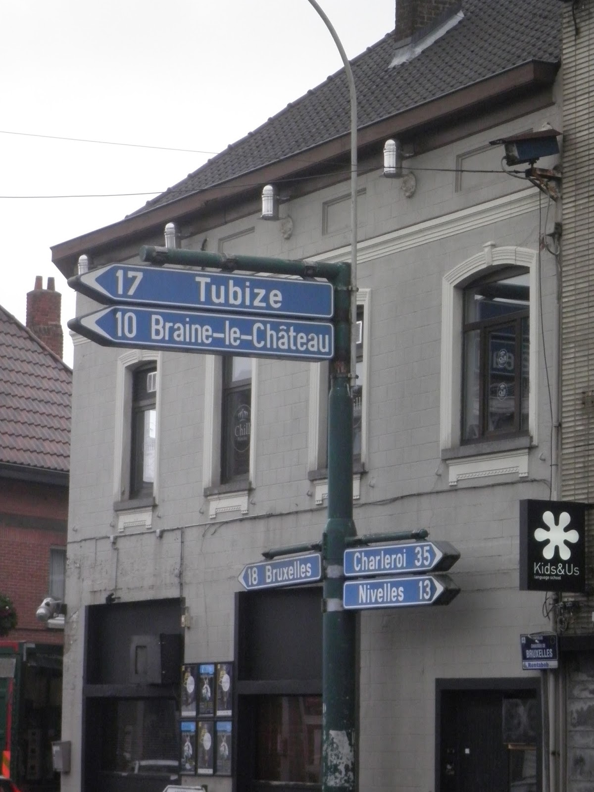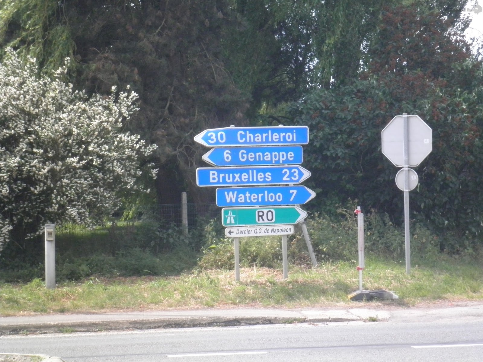 Llegados en tren hasta la localidad de Braine-l’Alleud (en Waterloo sólo paraban los trenes IR, uno cada hora, y como suele suceder, no era el nuestro) comenzamos la primera pateada del día, unos 6 km, primero hasta el cruce de las carreteras de Chaseau de Nivelles con la N5 y luego siguiendo hasta la villa de Waterloo, salpicados por una fina llovizna matinal que quizás quería rememorarnos las condiciones de tan célebre enfrentamiento.