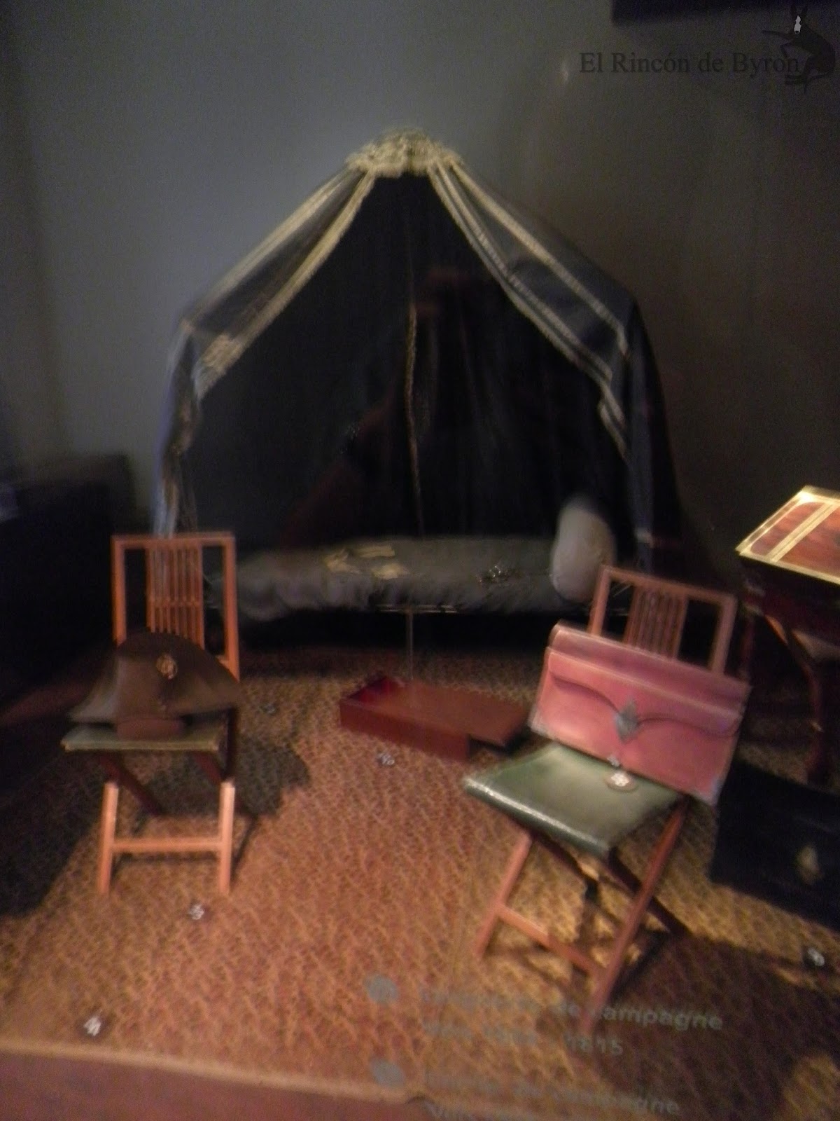 | Alfombra de la tienda de Napoleón, mesa y sillas plegables, carteras de viaje y cartera perteneciente al barón Fain (1778-1837). |
