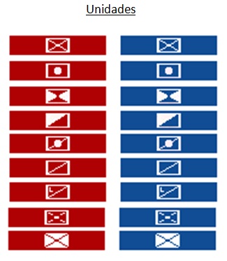 Adaptándolas con la simbología de las unidades tomada en algunos casos del Fields of Glory, de Microprose (1993), resultando el siguiente diseño: