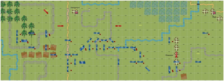 Una vez que tenemos mapa (o tablero) y las fichas diseñadas, hay que incorporar el orden de batalla histórico (OOB en inglés), que aumenta la laboriosidad y el tiempo que empeñemos. A continuación y para no hacer esta entrada más larga de lo requerido, mostramos sólo el del bando francés: