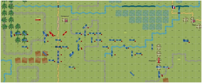 Hemos elegido la batalla de Quatre-Bras, junto con la de Ligny, preludio de la de Waterloo. Hubo algún enfrentamiento previo en la campaña, pero no de la importancia de los posteriores. Los contingentes de cada bando no eran muy numerosos (aprox. unos 60.000 hombres entre los dos bandos) y parte de la situación táctica de acometer la captura de un cruce de caminos, básico para controlar la carretera de Nivelles a Namur. El resultado podríamos decir que quedó inconcluso y el contingente anglo-aliado de Wellington se retiró hacia el norte donde dos días más tarde se daría la batalla definitiva.