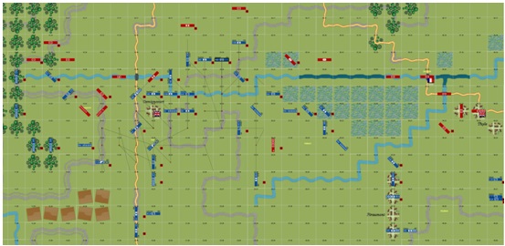 La experiencia por una parte fue más que satisfactoria, ya que la mecánica del juego es bastante realista y con unos gráficos más definidos el juego gana bastantes enteros. El lado negativo es tener que jugar los turnos para, a renglón seguido, tener que traducir cada movimiento a Vassal, con el considerable gasto doble de tiempo que ello supone. Quizás la próxima vuelta de tuerca sería traducirlo a un juego con miniaturas en solitario (o no), con la ventaja que el contrincante (IA) ya realiza sus acciones por si mismo.