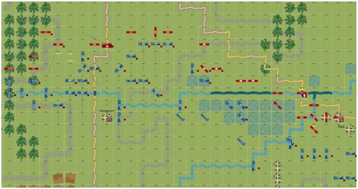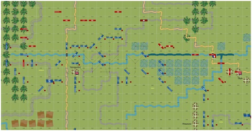 Obviamente esto representa un extra considerable de tiempo en planificación y confección del tablero y fichas por lo que optamos por un soporte de software en ordenador. Para tales soportes, generalmente gratuitos, contamos con programas como Vassal y Cyberboard, o de pago, ADC2, principalmente para jugar en modalidad PBEM y con Sun-Tzu (creo que se escribe así: siempre me lío con la s y la z para buscarlo) para jugar en tiempo real (algún otro hay software hay por la red, pero éstos son los más nombrados). La primera opción es el juego en solitario por comodidad obvia, aunque el juego permite la opción de dos jugadores (intuyo que hot-seat, o en la ya antigua modalidad de enviar la partida grabada por correo electrónico).