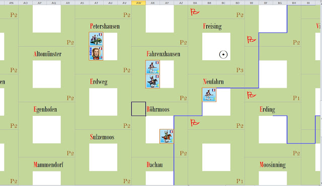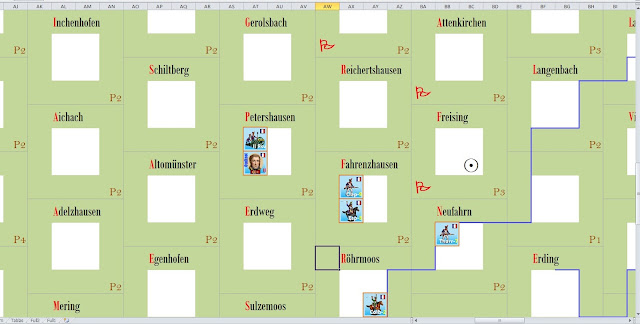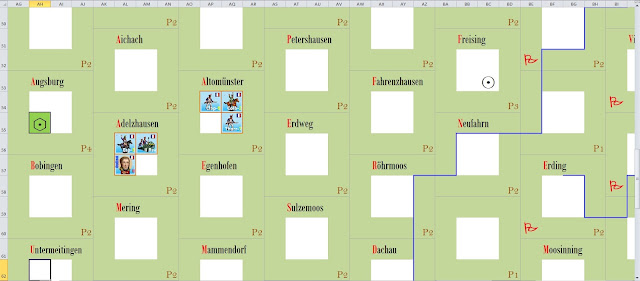 The following turn, dummies move northward of dummies do not put them in contact with any unit in the II Corps, probably their objective is the city of Ingolstadt, 30 km northeast.