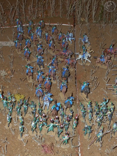 \»La maqueta intenta reflejar en un mismo instante los diferentes momentos de la batalla. De hecho, la disposición es \»atemporal\», tenemos al mismo tiempo la carga inicial de la caballeria española del Coronel Ibarrola y la de la caballería francesa que rompió las líneas españolas, en diferentes áreas.