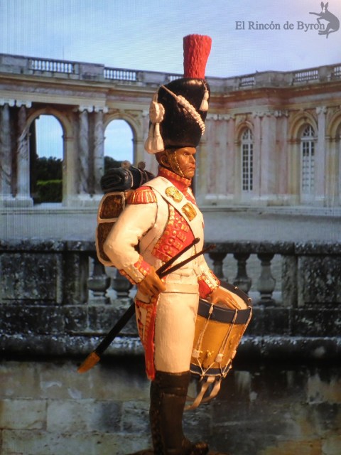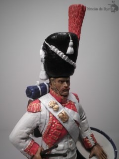 La figura es una copia de un modelo de de la casa Metal-Modeles, \»Drummer of the dutch grenadiers of the Guard 1812\», de 54 mm, en aleación de plomo y estaño y esculpida por Bruno Leibovitz.
