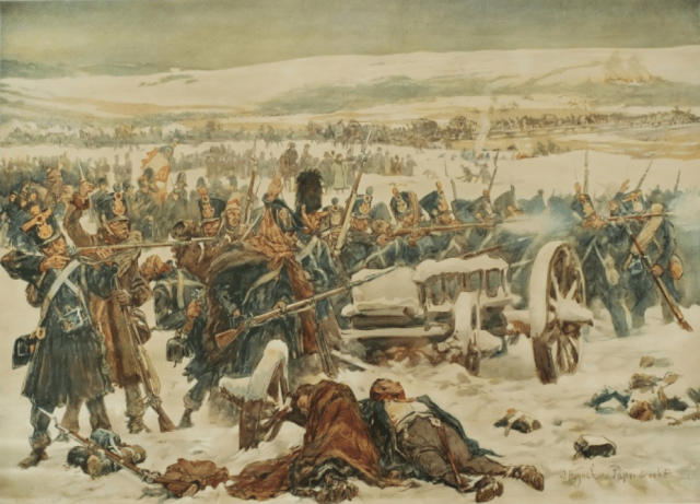 El sargento Bourgogne evoca en sus Memorias el triste final de este regimiento. La acción se desarrolla en Elbling en los últimos días de la campaña de Rusia: