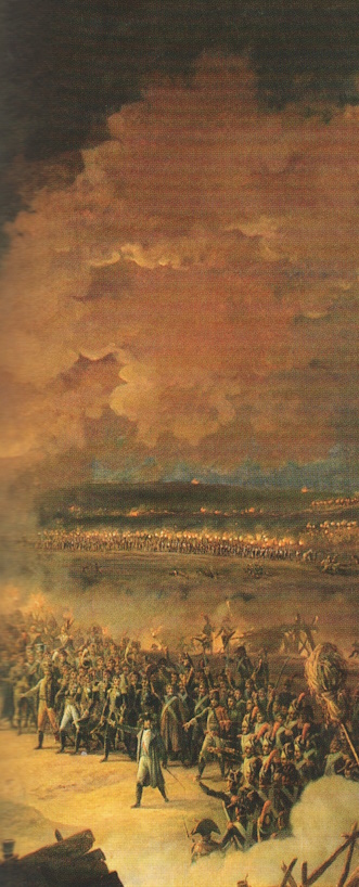 «Durante la velada que precedió a la batalla, mientras visitaba de incógnito los vivacs, es reconocido por las tropas. De inmediato los soldados encienden innumerables gavillas de paja, improvisando así una iluminación apoteósica, saludando al Emperador y vitoreándolo al tiempo con clamores apasionados y mil veces repetidos de “¡Vive l’Empereur!”»4.