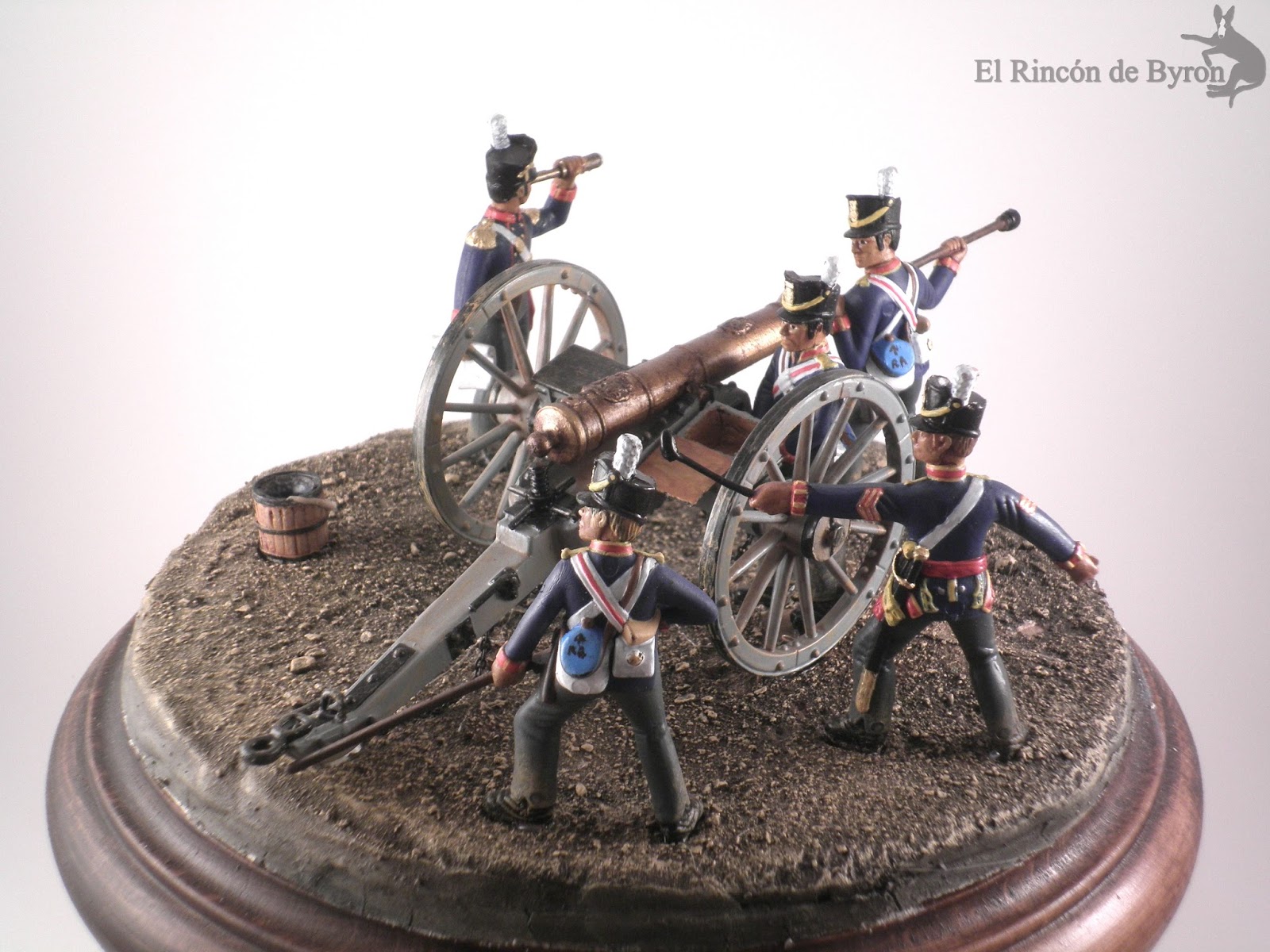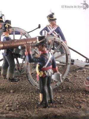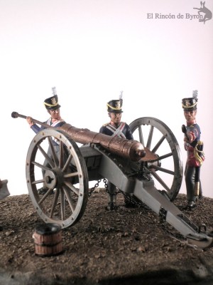 Con la entrada de esta semana volvemos al mundo de la miniatura militar, en este caso con una dotación de artilleros ingleses con oficial, cargando un cañón de 6 libras.