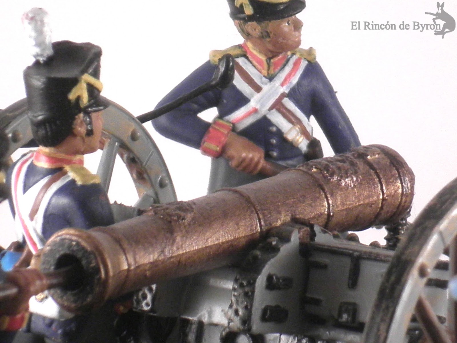 El cañón y sus partes no estaban nada mal, con un fundido bastante decente. Las figuras era otro cantar, y me recordaban a las figuras de plástico que se vendían antiguamente en bolsas de papel, con un acabado bastante tosco. En su conjunto un kit normal tirando a mediocre, con bastantes imprecisiones y faltas de acabado en el cañón (al menos por las fuentes consultadas) y los uniformes. Hubo que añadir los grabados de la parte superior del cañón y el agujero del oido, las cadenas y algunos grabados de la parte frontal de la cureña.
