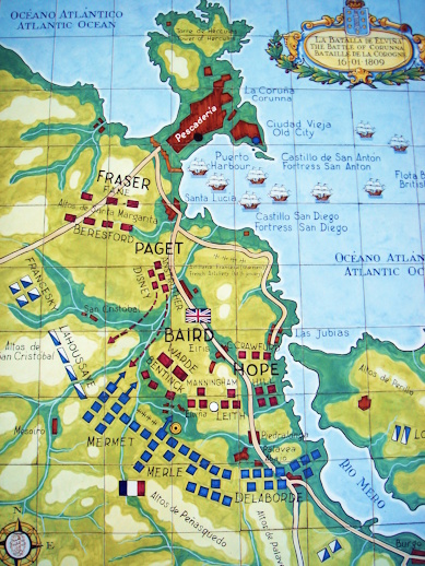– 6 enero – Moore con la Reserva entra en Lugo por la mañana. Se le une la brigada de Leith que Baird había enviado desde Astorga. Los rezagados van llegando a Lugo.
