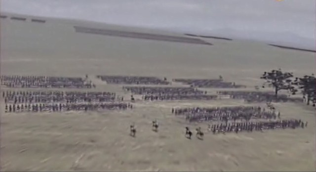 Entonces se inventa el concepto del adiestramiento. Al soldado se le debe enseñar a realizar toda una serie de movimientos aunque no deba saber que los está haciendo: cuando oiga la voz del comandante, ha de hacer el movimiento. Y el resultado en este punto será la perfección: durante todo el siglo XVII se busca esta perfección de los ejércitos personalizados, donde los hombres se muevan como máquinas. Y aún en la época de Napoleón, gran parte de esto permanece. En realidad como sabemos aún hoy es una idea que permanece que los soldados han de marchar uno, dos, uno, dos, porque esto crea la disciplina, la organización que es una cosa que aún hoy de algún modo los ejércitos llevan dentro, Pero en aquella época era el mejor modo de hacerlos combatir, no dejar nada a la improvisación. Dejar que el genio del comandante pueda utilizar al ejército como un instrumento sin voluntad, a su disposición. Y entonces, las masas que manda Napoleón al ataque contra la línea de Wellington, en el punto más débil, que él milagrosamente ha adivinado, allí, detrás de la cresta, son una masas que avanzan de este modo.