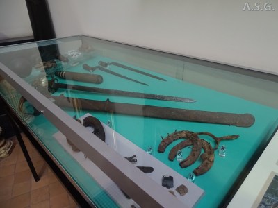 | Vestigios y armas encontrados en el campo de batalla de Waterloo. |
