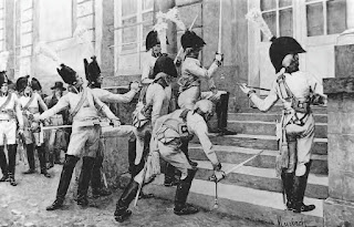 Hay que mencionar también, a pesar de que es muy conocida, la historia de los cadetes que en un gesto de provocación pura, afilaban la hoja de sus espadas en la escalinata de la residencia del Embajador de Francia, Sr. Laforest. Al verlos, se informa de que su coronel habría dicho: \»