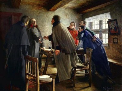 1812 – El 24 de febrero Federico Guillermó puso su estampa en el tratado de alianza con Francia. Se comprometía a proporcionar 20.000 hombres como contingente para Napoleón, casi la mitad del ejército oficial; las fronteras del pais se abrieron para el paso de las tropas en su avance contra Rusia y el pueblo de Prusia tuvo que proporcionar raciones de avena, heno, licores y comida. El Rey se trasladó a Postdam y los franceses ocuparon Berlin tras su salida. Blücher gemía a Gneisenau: \»¡Todo está perdido, hasta el honor!\». Recibió un encargo real para alejarse de los escenarios de mayor actividad y a principios de la primavera viajó hacia el sur, a lo largo de caminos atestados de tropas y convoyes de bagajes franceses. Federico Guillermo le había dado el castillo de Schneitnig, cerca de Breslau, donde permaneció todo el año.