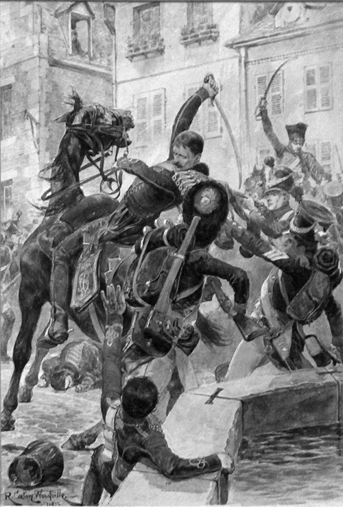 | Muerte de Luis de Prusia, sobrino del rey, en el combate de Saalfeld al comienzo de la campaña de 1806. Un negro presagio, preludio de la actuación del ejército prusiano durante la campaña (a) |