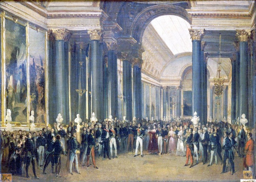 – Luis-Felipe inaugurando la Galerie des Batailles el 10 de junio de 1837 – By François Joseph Heim – Web Gallery of Art: Image Info about artwork, Public Domain, https://commons.wikimedia.org/w/index.php?curid=6450279
