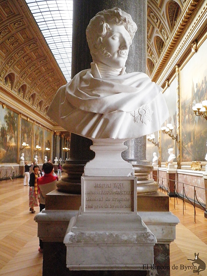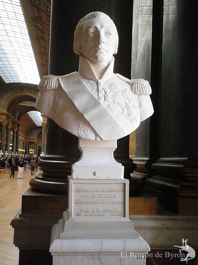 La galería de las Batallas del Palacio de Versalles se concibió también como un panteón de las glorias nacionales, ya que presenta una serie de ochenta bustos de oficiales célebres fallecidos en combate, así como placas de bronce con el nombre de muchos otros. Hay cerca de una treintena de bustos dedicados a altos oficiales y mariscales napoleónicos uniformados con gran detalle y que fueron heridos o muertos en acto de servicio. El interés de las esculturas, más allá de representar con mayor o menor acierto la efigie del militar, no dejan de ser también un recordatorio de su carrera y sus logros, y que en algunos casos no deja de ser cuando menos apasionante, desde generales del período Revolucionario hasta algunos de los mariscales de Napoleón. Trataremos de relacionaros esta treintena de bustos en unas tres entradas a partir de esta con una corta reseña de la trayectoria de cada uno de ellos.
