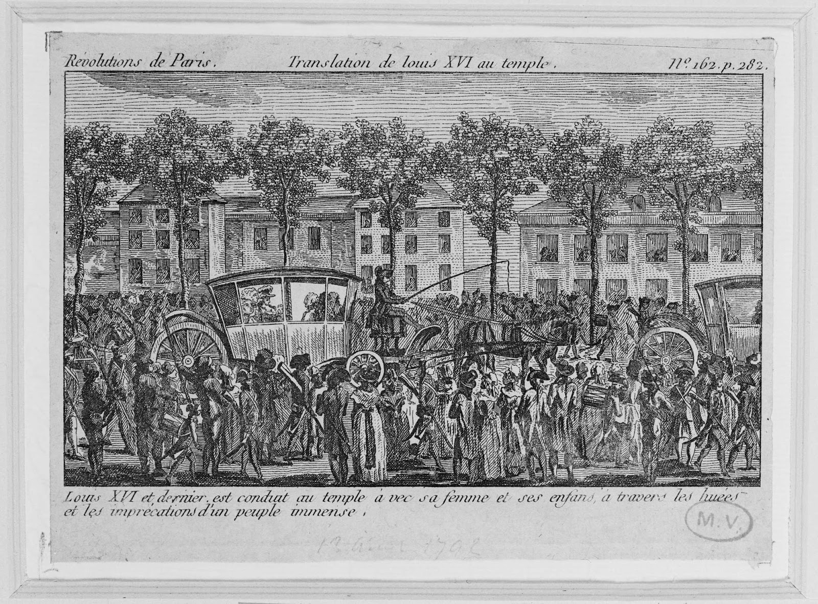 | Traslado de Luís XVI y su familia al Temple el 13 de agosto de 1792, grabado revolucionario, Versalles, palacios de Versalles y Trianón © RMN (Palacio de Versalles) / Fotógrafo desconocido (3) |