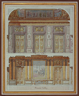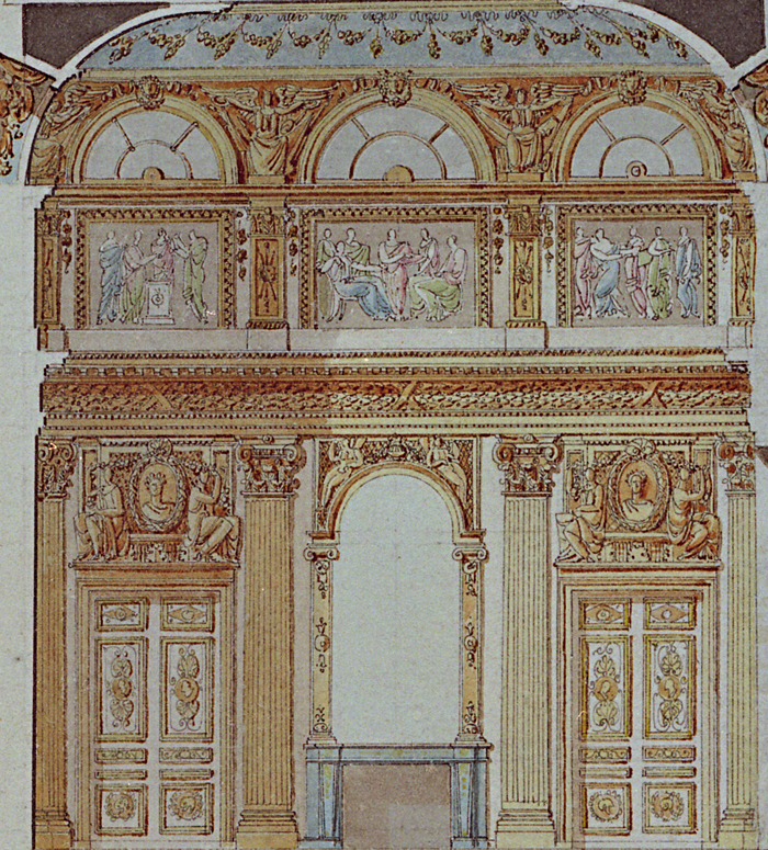 Izquierda: Alzado en sección del primer salón (apartamento habitual del Emperador, Colección privada. © Jean-Marc Manaï