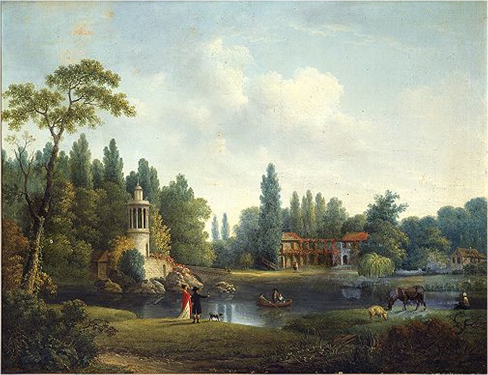 Plano de los palacios y jardines del Gran y Pequeño Trianon, por Charles Picquet (1821). Fuente: Bibliothèque nationale de France, département Cartes et plans , GE C-2725 (5) |