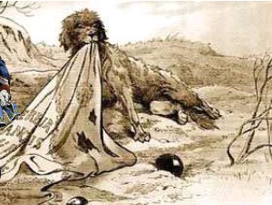 | Grabado representando a Moustache en la batalla. (1836) (g) |