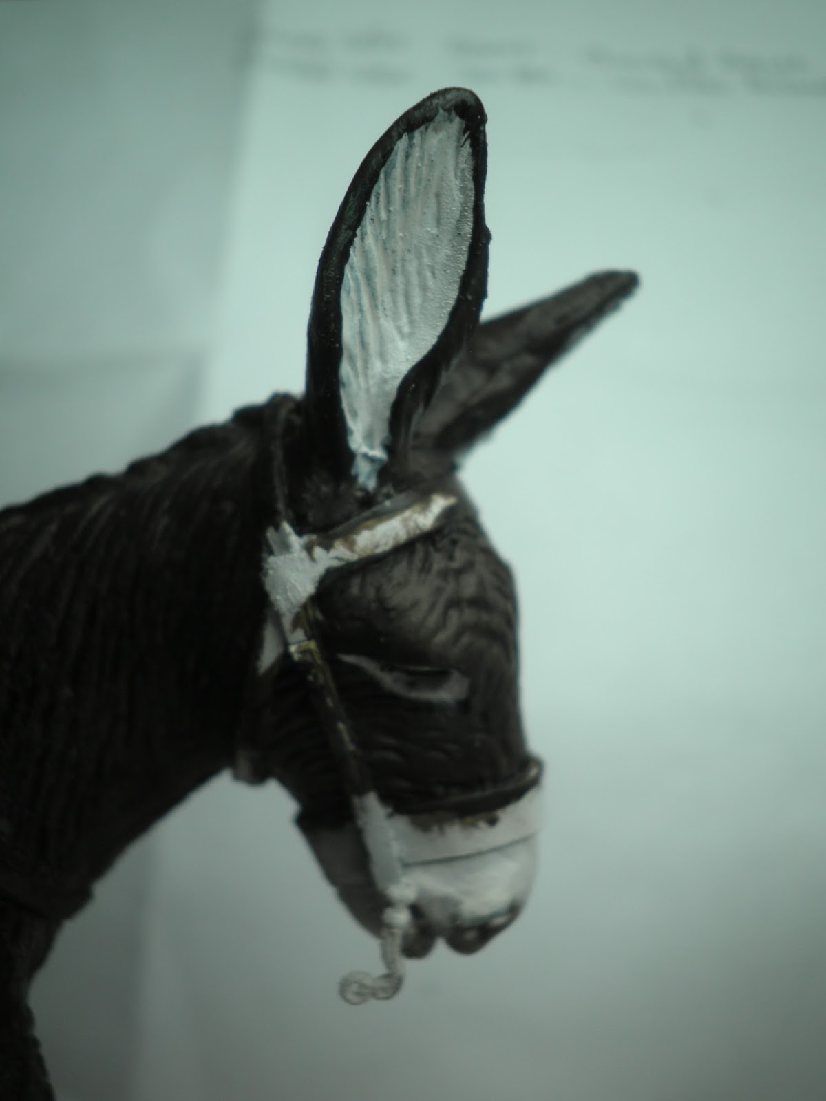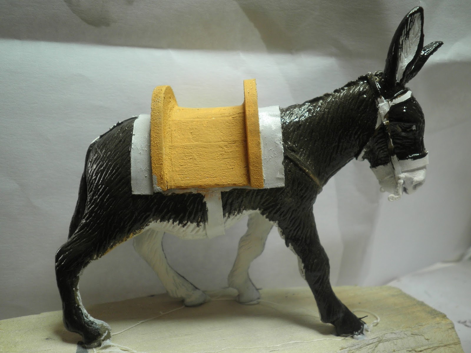 | Nuestro burro ya pintado y que formará parte de un diorama más grande. |