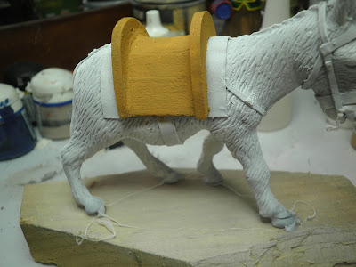En cuanto a la guarnición, manta y correajes de la figura, se realizan todas con lámina de estaño en la mayoría de casos doblada para que tenga más cuerpo. En el caso de la manta quizás queda un poco rígido, pero como sólo van a sobresalir los bordes, tampoco le he dado mucha importancia.