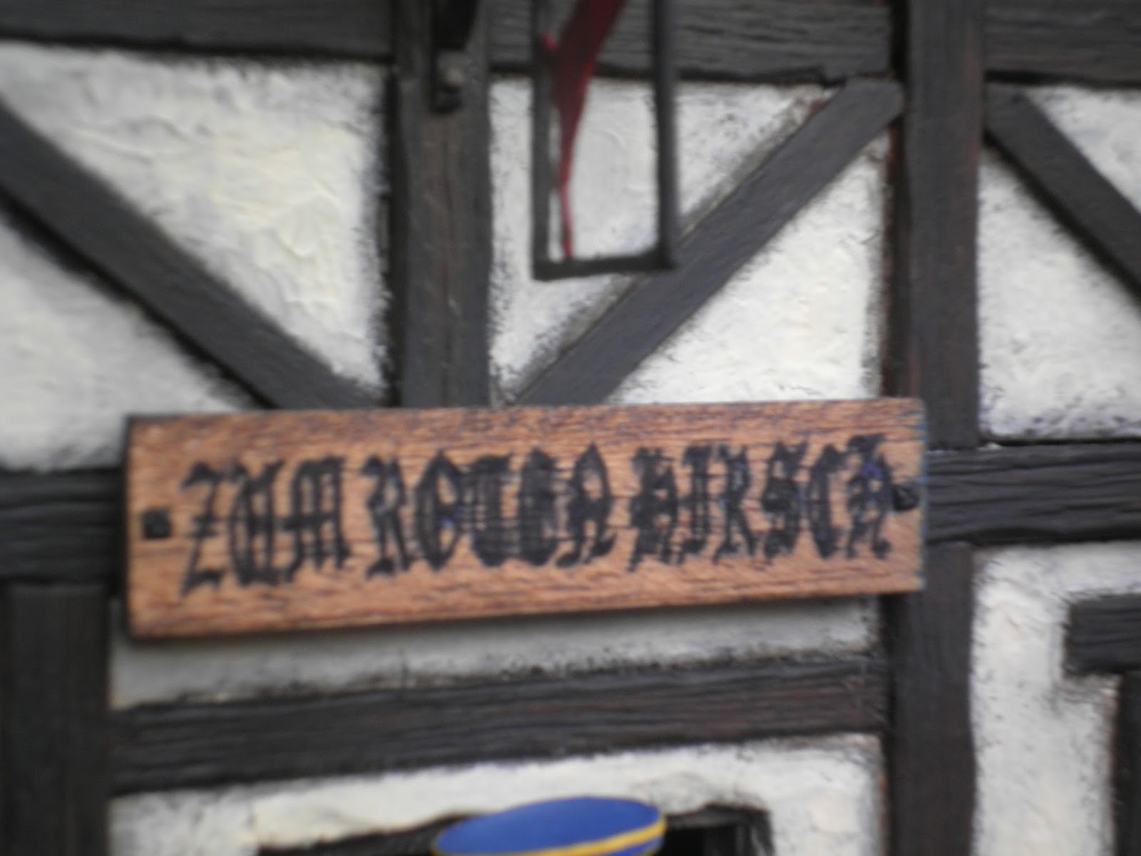 El rótulo de la posada \»Zum Roten Hirsch\», algo así como El Ciervo rojo\» (izquierda).