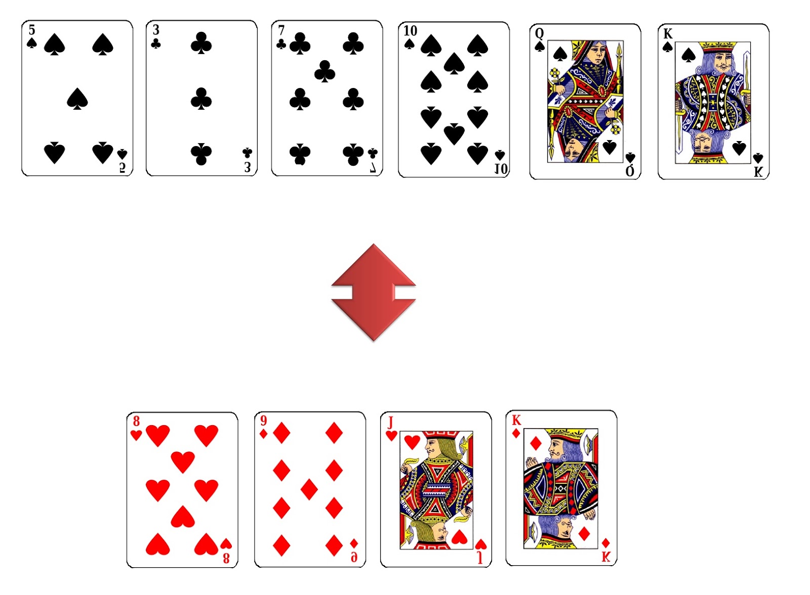 El juego se juega con un paquete estándar de tarjetas, quitando los Jokers. Cada comandante del ejército recibe la mitad de las cartas, rojas o negras, según corresponda, con las seis cartas de figuras que representan las divisiones de caballería y las otras 20 cartas representando divisiones de infantería. Se ignoran los otros valores de las cartas y se supone que la artillería se integra en las 26 divisiones de caballería y de infantería en cada lado.