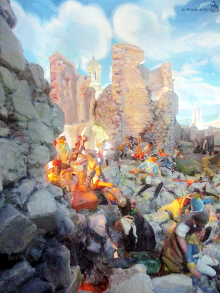 El GRAN DÍA DE GERONA.- Diorama mostrando una escena reproducida en el cuadro «Gran dia de Gerona»: la resistencia opuesta por los defensores de la Ciudad, el 19 de septiembre de 1809, al asalto de las fuerzas francesas. Trabajo realizado por el maquetista D. Ramón María Carrera.