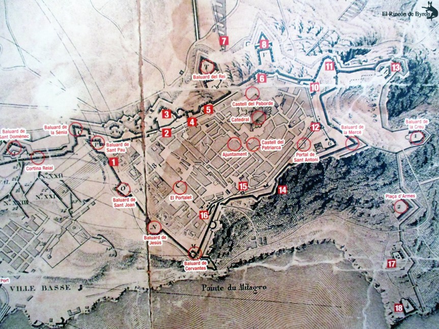 El primero sería el refuerzo de las fortificaciones de la Parte Alta, con una contramuralla en el lado de mar, en el paseo de San Antonio, y la construcción de varios baluartes exteriores como avanzada de las defensas. Después se hizo otra en la parte de tierra, que ahora es el Paseo Arqueológico.
