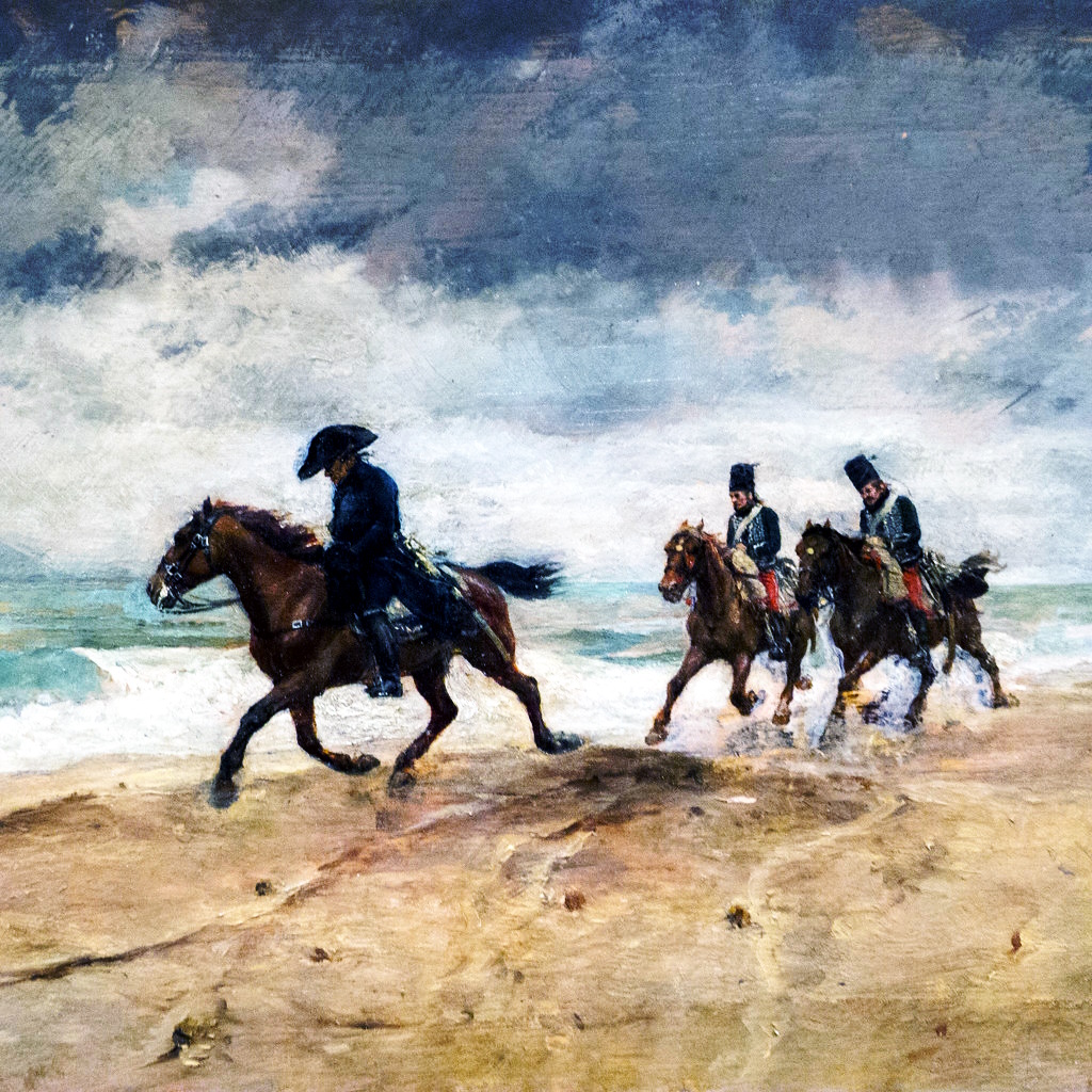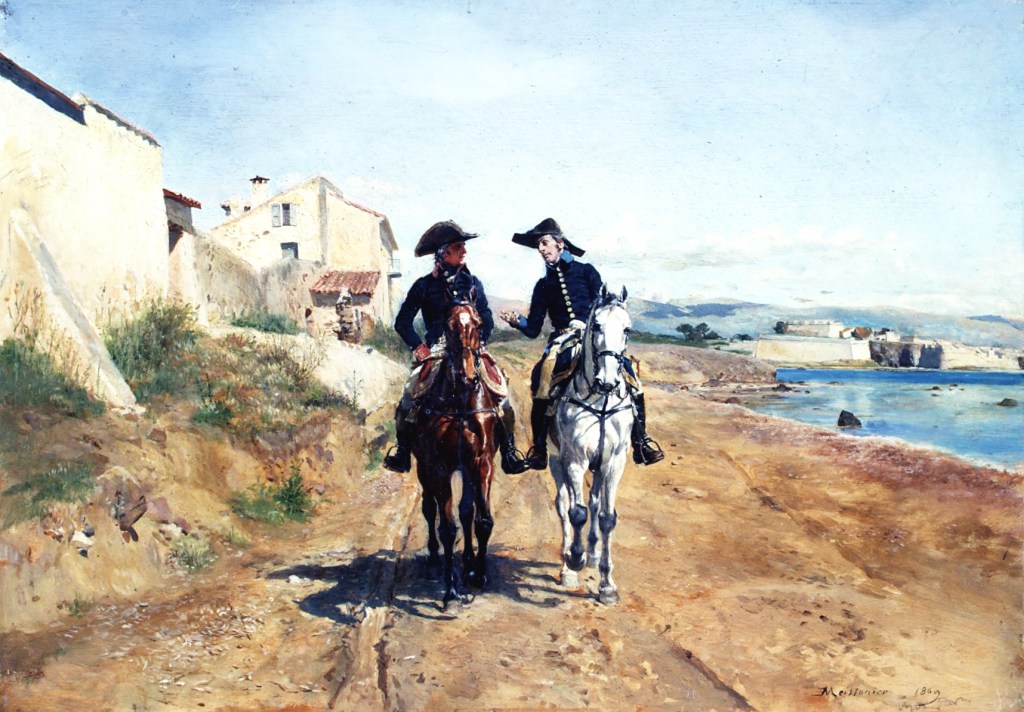 Meissonnier va aussi consacrer un certain nombre de tableaux à la période révolutionnaire sans qu’il faille y voir une intension politique : «Les renseignements«; «Le général Desaix à l’armée du Rhin et Moselle» (1867), «Moreau et Dessoles avant Hohenlinden» (1876). Le paysage y prend une certaine importance. Mais force est de constater que Meissonnier fut un piètre paysagiste, qui reste acceptable dans les vues largement brossées comme pour «Le général Championnet au bord de la mer» (1882). Ses vues de Poissy, d’Antibes ou de Venise manquent manifestement d’intensité, d’atmosphère. Et la réussite du 1807 repose en partie sur l’absence de paysage, comme il le notait lui-même : «Si le 1807 produit cet effet d’horizon sans limites et de masses humanes innombrables, c’est qu’il n’y a rien sur le terrain que les hommes, pas d’accidents de détails, de paysage, d’arbres, etc…, donnant une échelle immobile»