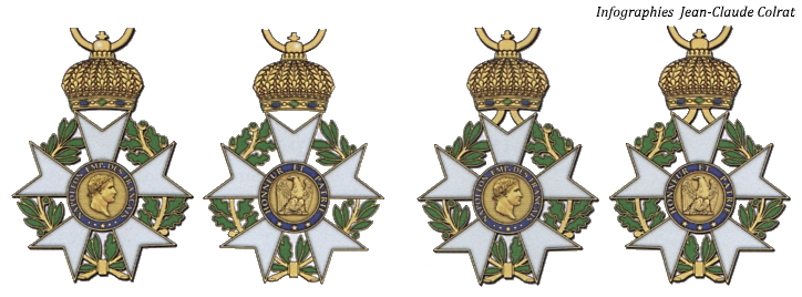 Con la amable autorización de Jean-Claude Colrat os traemos esta semana un artículo de la revista \»Le Briquet\» que trata de las condecoraciones de la Legión de Honor durante el período consular e imperial, hasta la restauración, así como los diseños de las infografías a cargo también de Colrat.