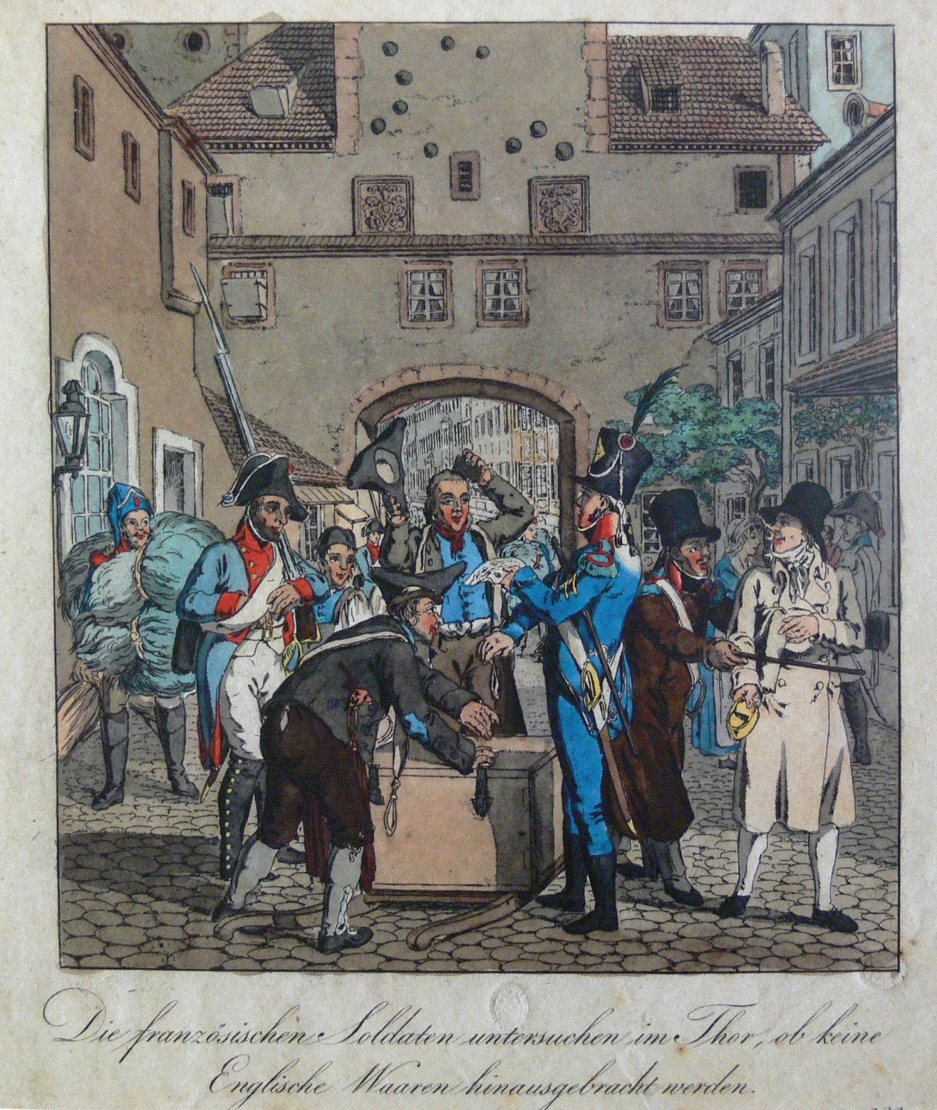 Soldados franceses inspeccionando las mercancías en Leipzig en 1806 a la búsqueda de contrabando (i) |