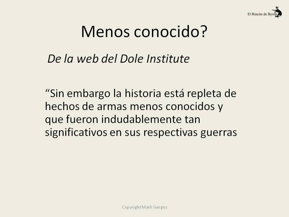«Hoy tengo el gran placer de presentarles e introducirles a un colega y amigo, el profesor Mark Gerges. Markus tuvo una completa carrera como oficial del ejército después de su graduación de Norwich y Vermont. Él era un oficial de carros así que somos almas gemelas en ese sentido. Tuvo una muy ilustre carrera militar, incluyendo el servicio durante la primera Guerra del Golfo cuando era comandante de una compañía de tanques durante las operaciones de combate. Ha sido galardonado con dos estrellas de bronce, una con una enseña V por el valor, así que este es el personaje que va a estar hablando hoy. También enseñó historia en West Point, su último trabajo en el ejército fue enseñar historia militar en el comando y en el Colegio del Estado Mayor General. Luego de completar su retiro de carrera militar como teniente coronel, continuó con nosotros durante los últimos diez años, como instructor civil y estamos encantados de tenerlo en el Departamento, por supuesto, es un buen experto en la guerra napoleónica y su enfoque se encuentra en las operaciones de caballería británica, francesa y portuguesa y la Legión Alemana del Rey en las campañas de Wellington en la Península Ibérica. Ha estado en la mayoría de los campos de batalla de Wellington en la Península Ibérica y, por supuesto, Waterloo en la campaña belga. Además, ha realizado investigaciones de archivo en Gran Bretaña, Francia y Portugal, su libro probablemente será el estudio estándar de este tema cuando finalmente se publique. Continúa haciendo otras investigaciones, presenta trabajos, es invitado a dar conferencias públicas, revisa libros, escribe artículos, él hace todo eso.