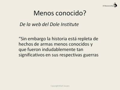 Bueno, gracias Rich, siempre odio cuando las personas te dan tan buena presentación, entonces no quieres decepcionarlos, y elegí esta fotografía para esto, esta imagen aquí, [imagen superior] estos son los arcos del puente de uno de los pueblos que se hablará, Trespuentes. Es el 15º de húsares, uno de los regimientos de caballería en esta batalla, y tengo que decir que todas las ramas de la caballería del ejército desempeñaron un pequeño papel en lo que vamos a hablar hoy, por desgracia. Pero sabes que una de las mejores cosas de este programa al hacer esto te da la oportunidad de reflexionar sobre algo que crees conocer muy bien y esto, esta tercera serie de Fort Leavenworth es esta idea de batallas decisivas menos conocidas y por lo tanto mientras jugaba con esta idea, tuve que preguntarme realmente a qué se refiere con menos conocido.