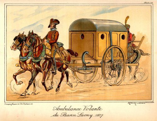 2. El concepto de ambulancia ya era conocido antes de las guerras napoleónicas. Creo que Larrey le dio ese plus de importancia por cómo entendió sus posibilidades y evoluciones en el campo de batalla. Un verdadero hombre del renacimiento en los principios de la época moderna.