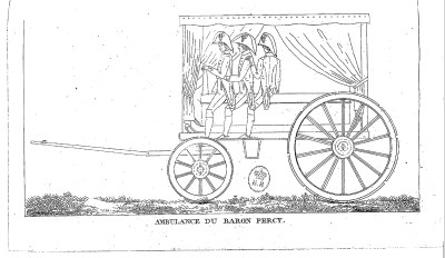 \»J\’avais d\’abord imaginé de faire porter lés blesses sur des chevaux garnis de bâts, et de paniers convenables, mais l\’expérience me fit bientôt connaître l\’insuffisance et l\’inutilité de ce moyen. Je conçus alors un système de voiture suspendue, qui pût réunir à la solidité, la célérité et la légèreté.\»