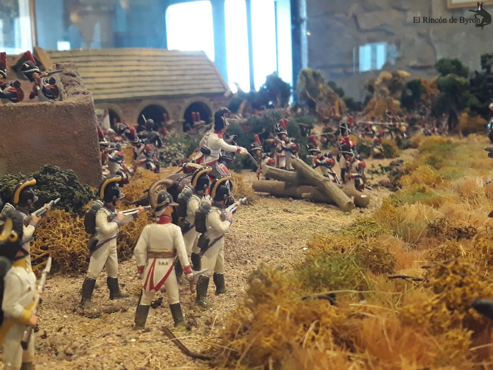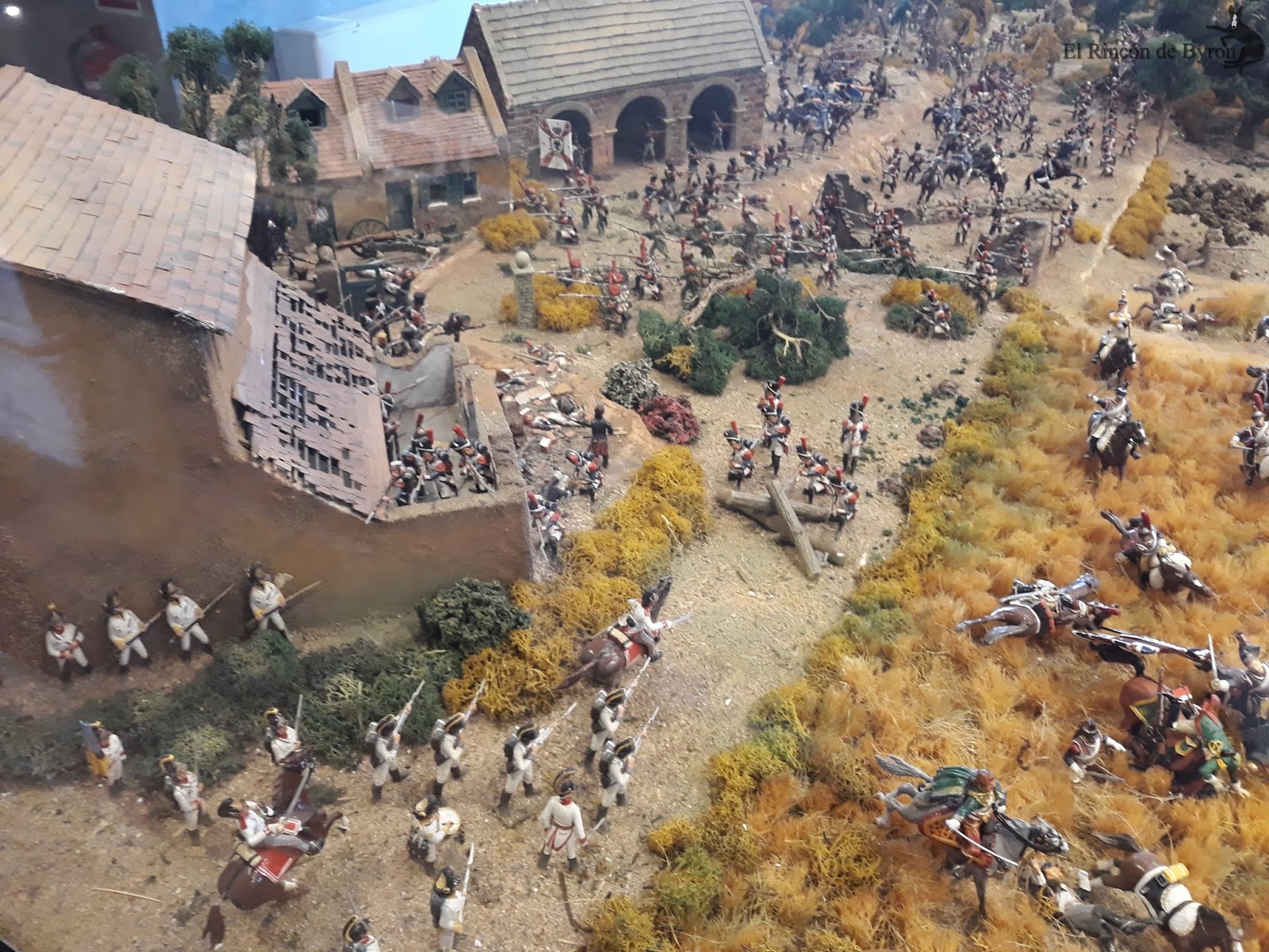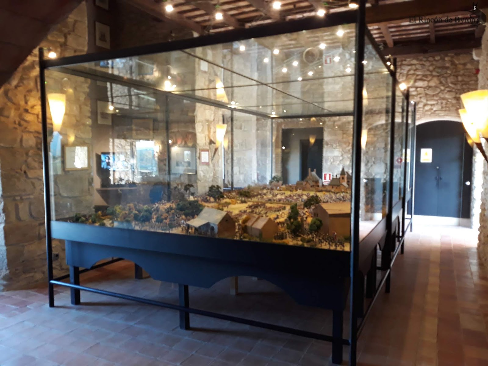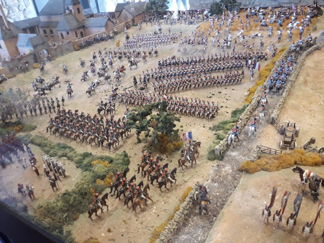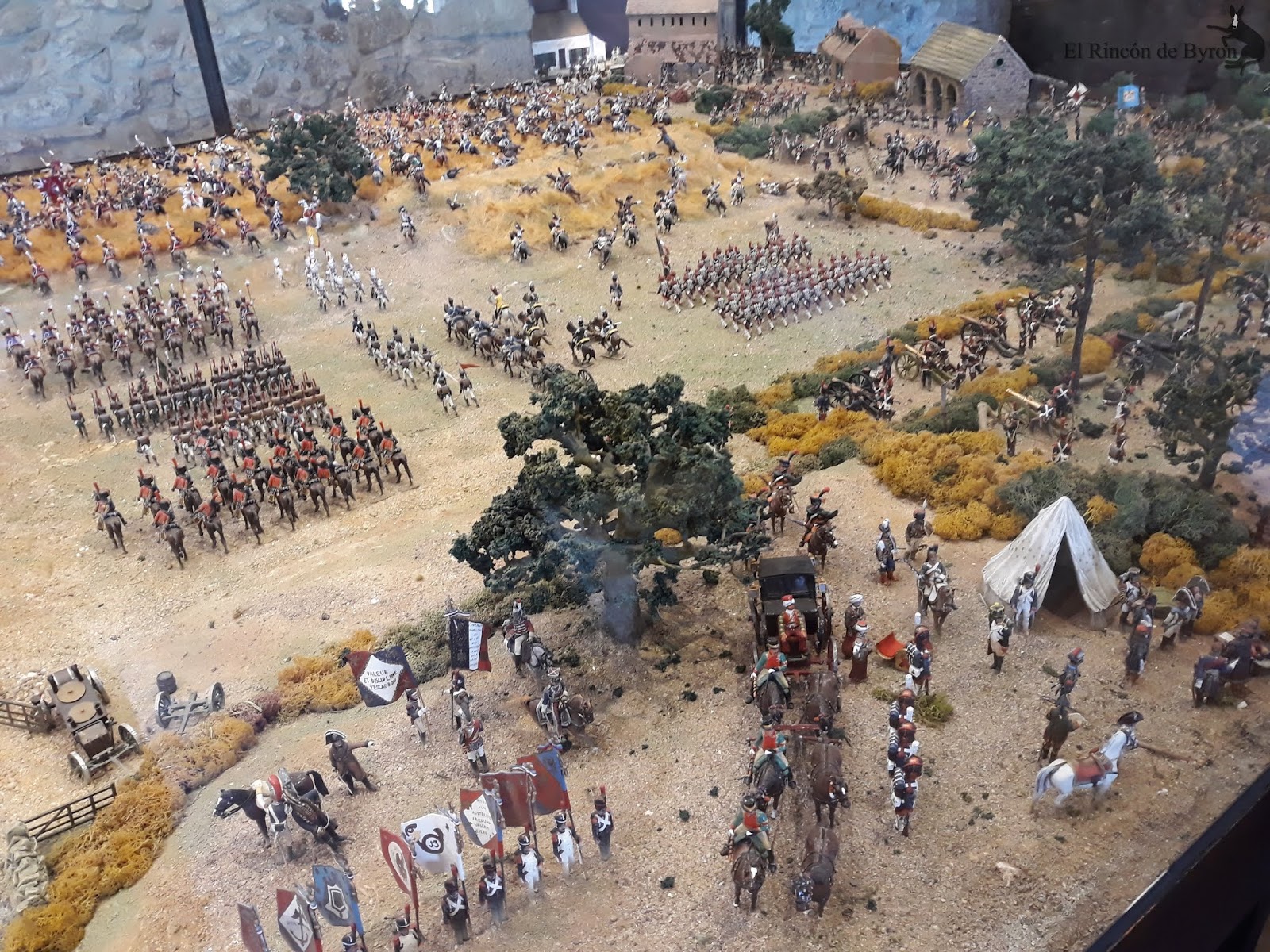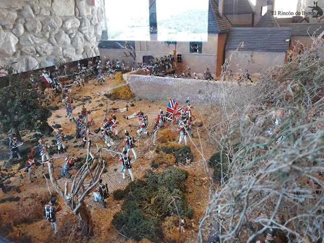 La maqueta vista en el lugar en vivo y directo es más elocuente que no mis fotos, que sólo capturan en algunas escenas las grandiosidad de la misma. En su conjunto es un modelo bastante bueno, que huye de las escalas rigurosas del terreno para representar las principales acciones y zonas del campo de batalla, con una calidad y rigor en el pintado de las figuras muy buena y que se mantiene en la casi totalidad de la escena. Algunas mellas en las figuras y pérdida de pintura por el paso del tiempo, pero que no ensombrecen en ningún momento esta monumental obra. Si estáis de paso por tierras de Gerona en el Ampurdán, y tenéis tiempo libre, os propongo un desvío en el camino y hacerle una visita a esta magna obra de Albert Diks y a su establecimiento.