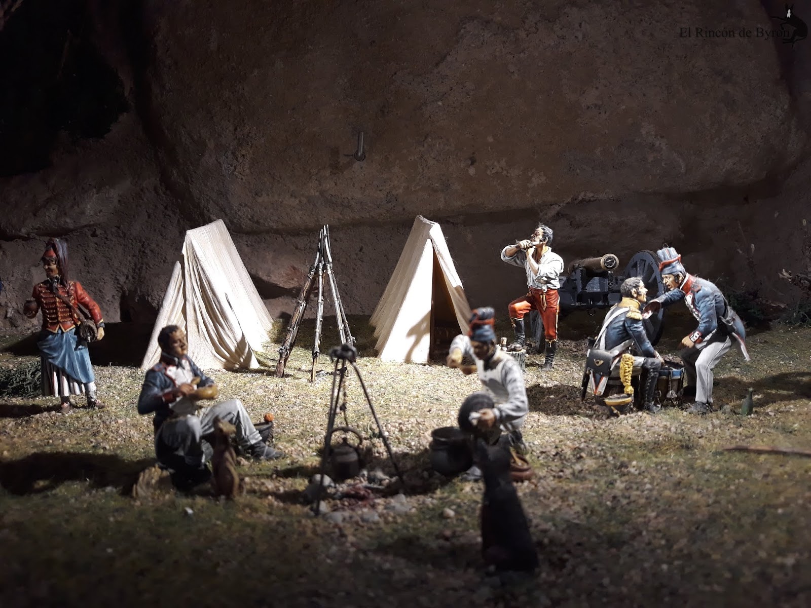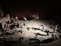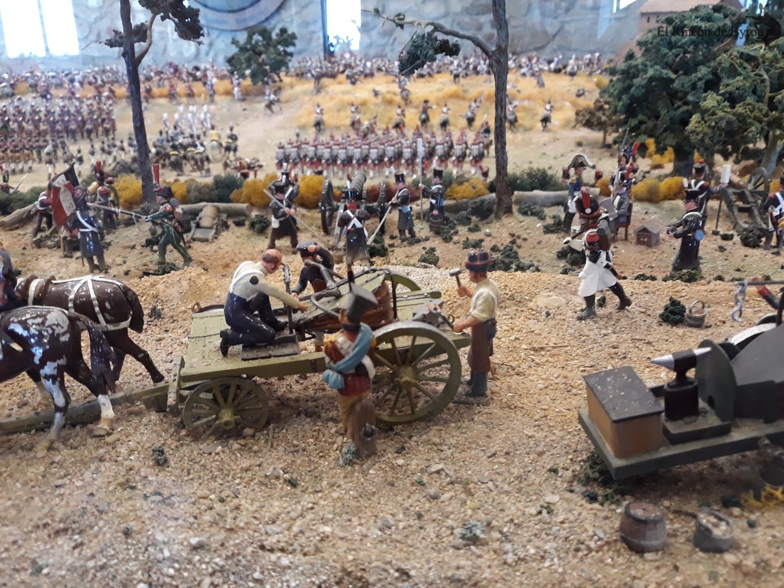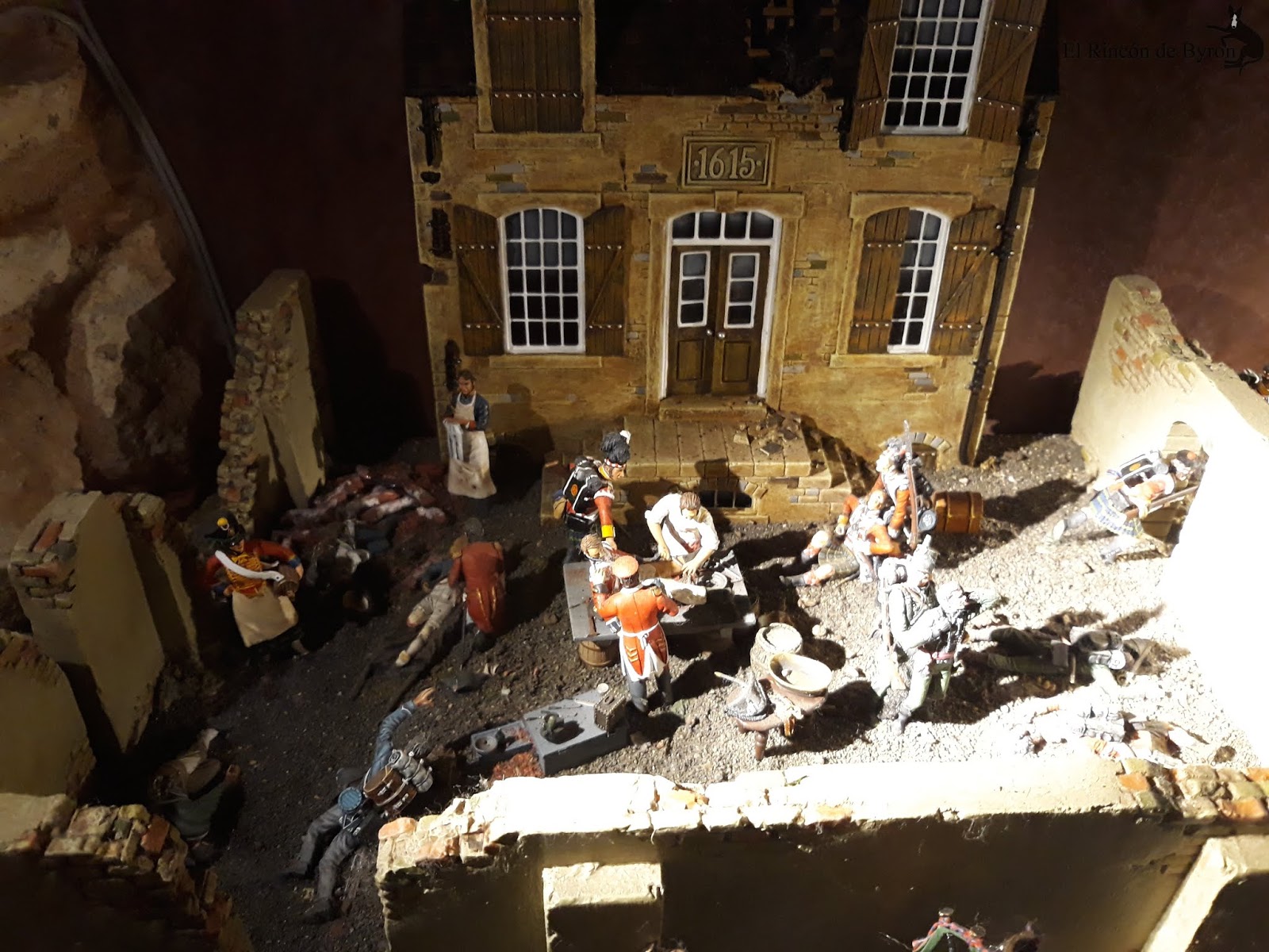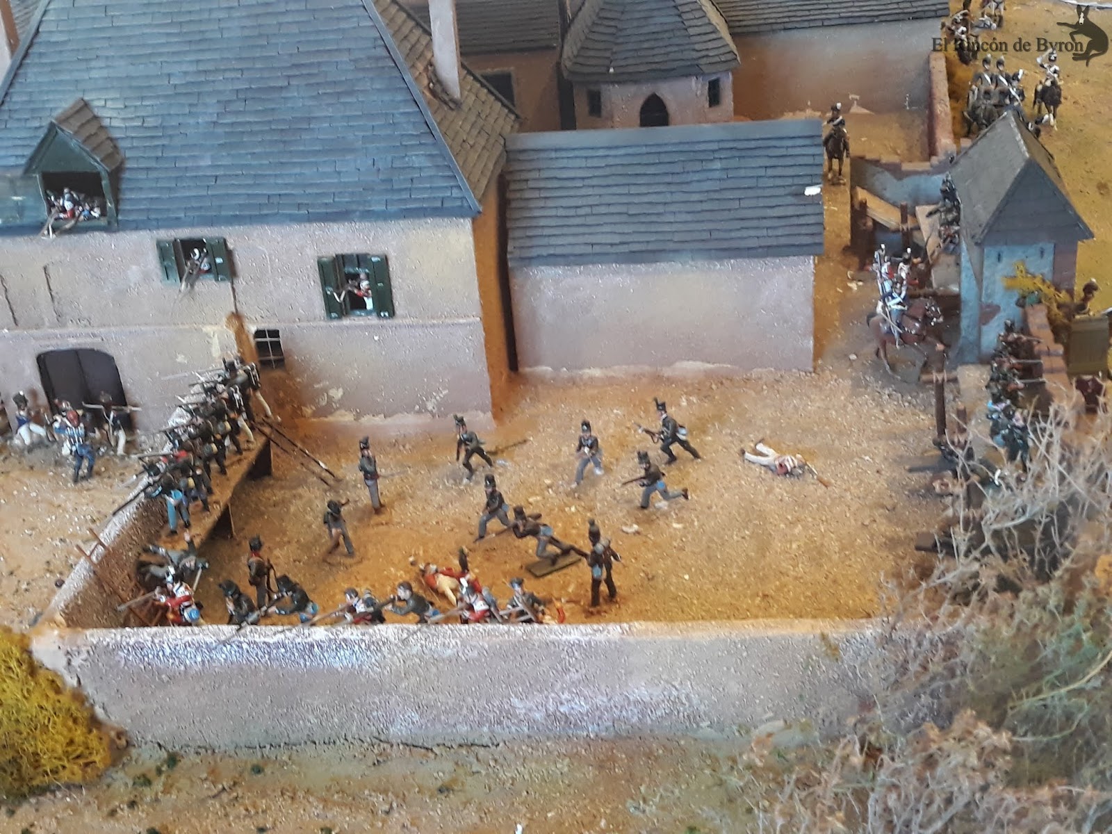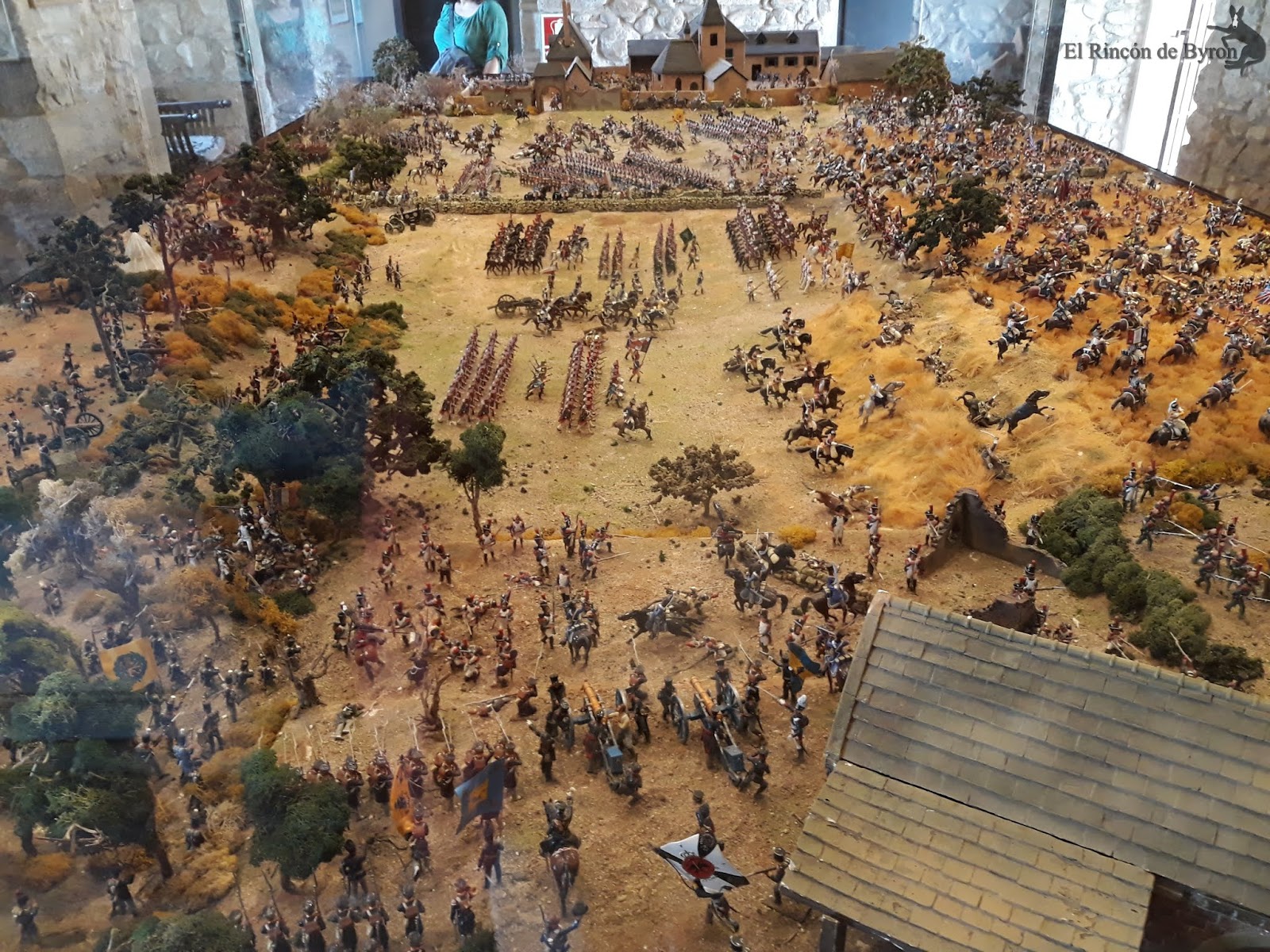 La maqueta vista en el lugar en vivo y directo es más elocuente que no mis fotos, que sólo capturan en algunas escenas las grandiosidad de la misma. En su conjunto es un modelo bastante bueno, que huye de las escalas rigurosas del terreno para representar las principales acciones y zonas del campo de batalla, con una calidad y rigor en el pintado de las figuras muy buena y que se mantiene en la casi totalidad de la escena. Algunas mellas en las figuras y pérdida de pintura por el paso del tiempo, pero que no ensombrecen en ningún momento esta monumental obra. Si estáis de paso por tierras de Gerona en el Ampurdán, y tenéis tiempo libre, os propongo un desvío en el camino y hacerle una visita a esta magna obra de Albert Diks y a su establecimiento.
