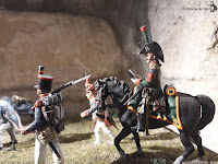 | Puesto de mando francés. El emperador con su habitual chasseur \»apoya\» catalejos |