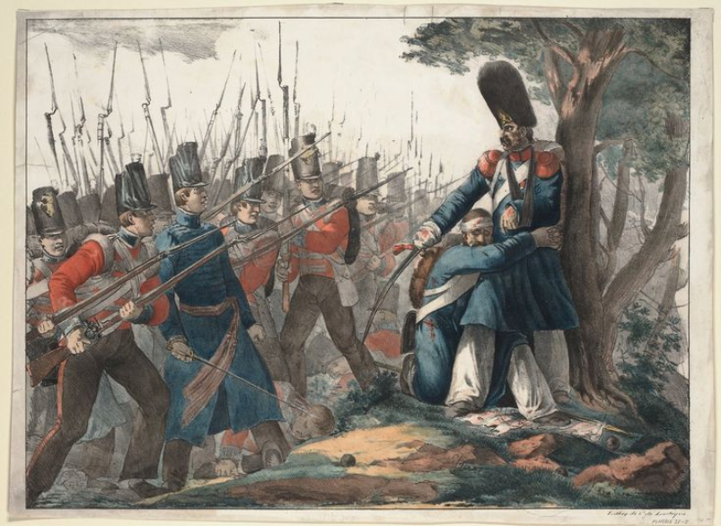 | \»La Guardia muere y no se rinde jamás\», por Nicolás Toussaint-Charlet (1830) (c) |