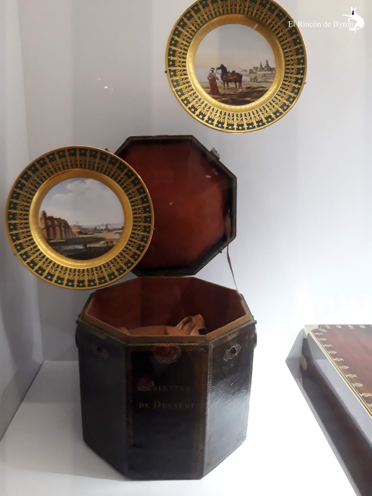 – Caja de viaje (Francia, 1810), para los platos de postre del servicio particular del Emperador, marroquín verde, metal y piel de gamuza.
